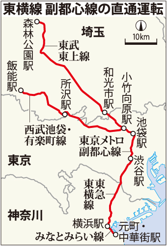 東横線および横浜高速みなとみらい線~副都心線を経て